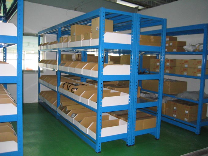 每层在均匀分部状况下承重可达200-300KG,采用插接式组合,安装不需要任何螺丝,层与层之间的高度可按货物的尺寸以50mm为节距任意调节,增加存货的随意性和灵活性.安装简单,使用方便,外形美观.