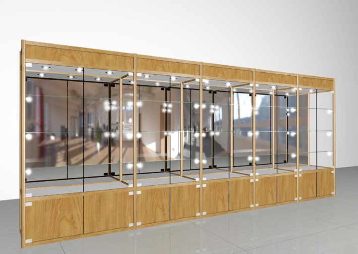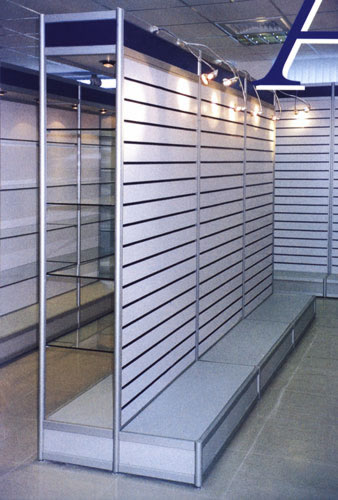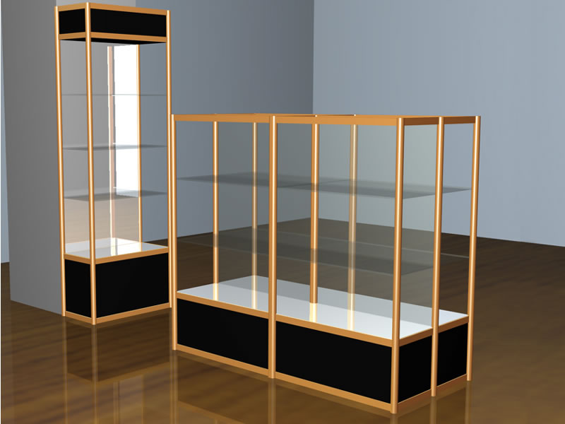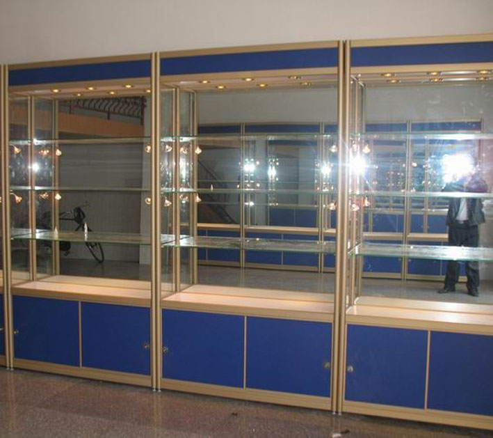 主要用于摆放较贵重且体积不大,需有较好的展示空间,达到展示商品的应有效果。主要有:铝合金制架、玻璃制架、木质系列展柜三种类型,该三种类型没有绝对的标准,可根据商品的需要设计制作,达到展示的应有效果。